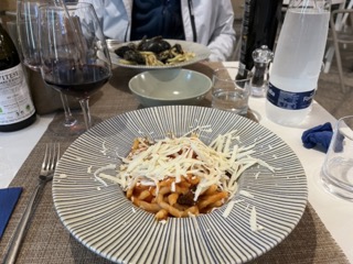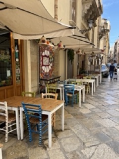 We had a superb dinner and able to sit outside on the restaurant terrace, albeit with our jackets on! We both had the local pasta Busiata, mine with aubergine and ricotta and Jacques with mussels!