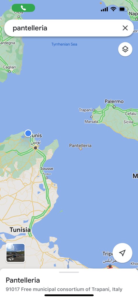 The day we left Tunisia (Tuesday 18th April) we were up at 6am to await Kais and representatives from the various organisations required to check us out of the country i.e. Police and Customs. They were very efficient and provided us with all the papers we needed to prove that Mossy Joe had left European waters for Tax and Immigration purposes. We set off at 7.50 to head to Pantelleria, an Italian island almost half way between Tunisia and Sicily, a trip of 80 miles taking 10 hours.