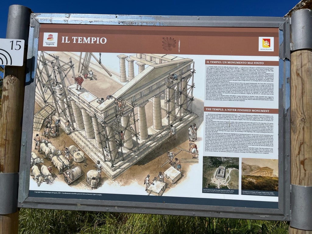 I was absolutely entranced by Segesta – a town inland from Trapani from Roman times but not actually Roman! The story goes that the locals began to build the Roman temple (420 BC) that you can see in the photos but it was never finished, mostly because as long as it wasn’t finished the town could continue to get funds from Rome to complete it. The Roman version of your extension project ‘sorry we just need a few more parts and tools – I’ll just pop to Jewsons, be back in an hour, can I have a £500 advance for payments I need to make’ and then you don’t see the builder for 3 weeks!