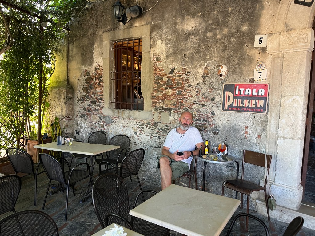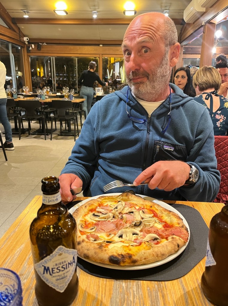 We had dinner and drinks, my now customary Aperol Spritz (which I have to say I hated the first time I had it but perhaps because that was in the Cotswolds in February!) and Jacques taking a shine to the local Messina beer.