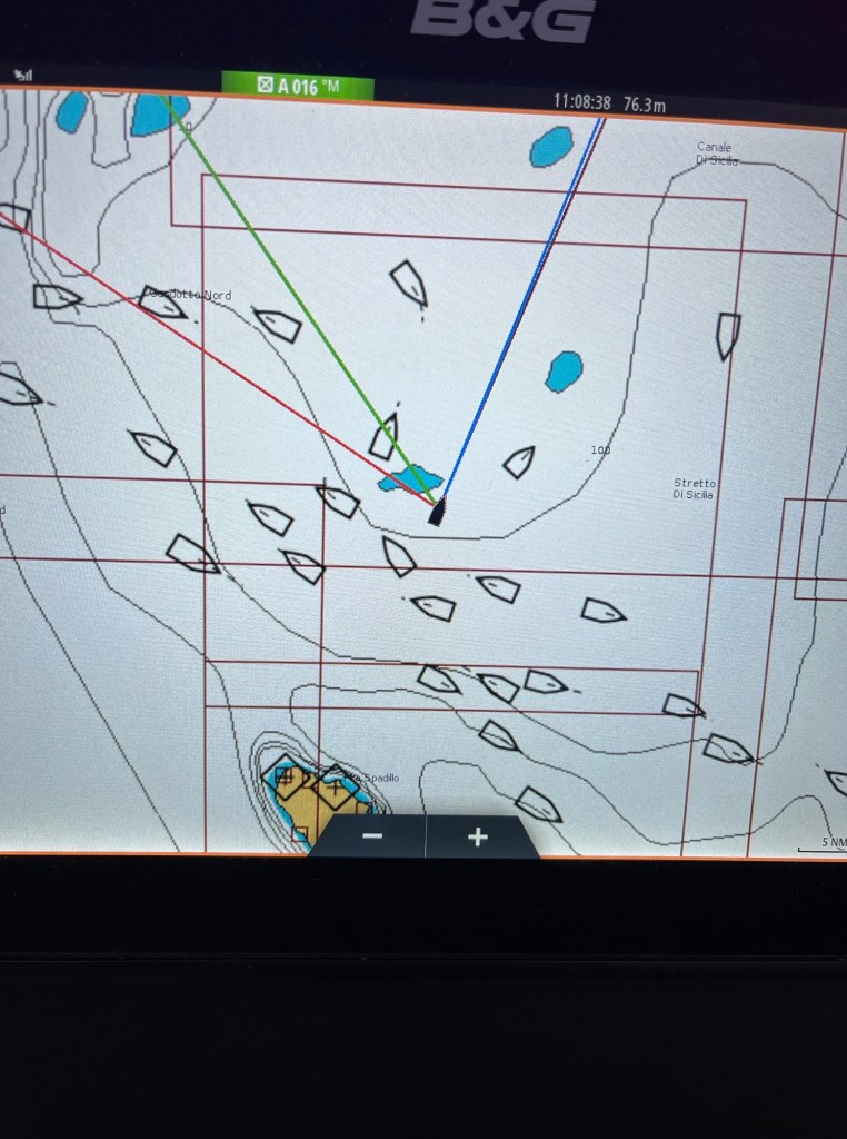 We only have one more stop before reaching Capo d’Orlando where we say ‘Arrivederci’ to Mossy Joe for 10 weeks. Jacques decided to cheer us both up with this screen shot……