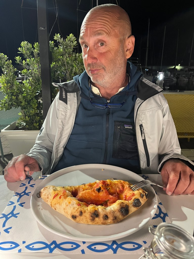 Our last meal in a Marina – Pizza for me and Calzone for Jacques – both excellent!