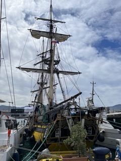 And whilst I look very relaxed in this photos, next time I’ll describe the experience of mooring up in Palermo the previous day in 20 knots of side wind into a relatively small space between a rowing club on one side and a Pirate ship on the other!!