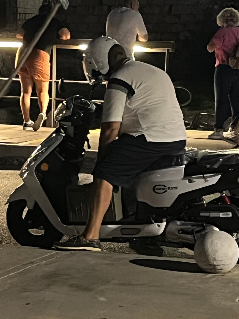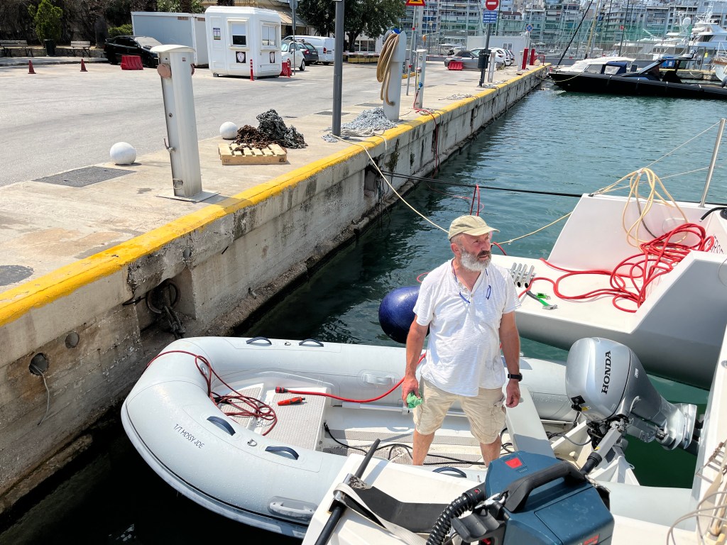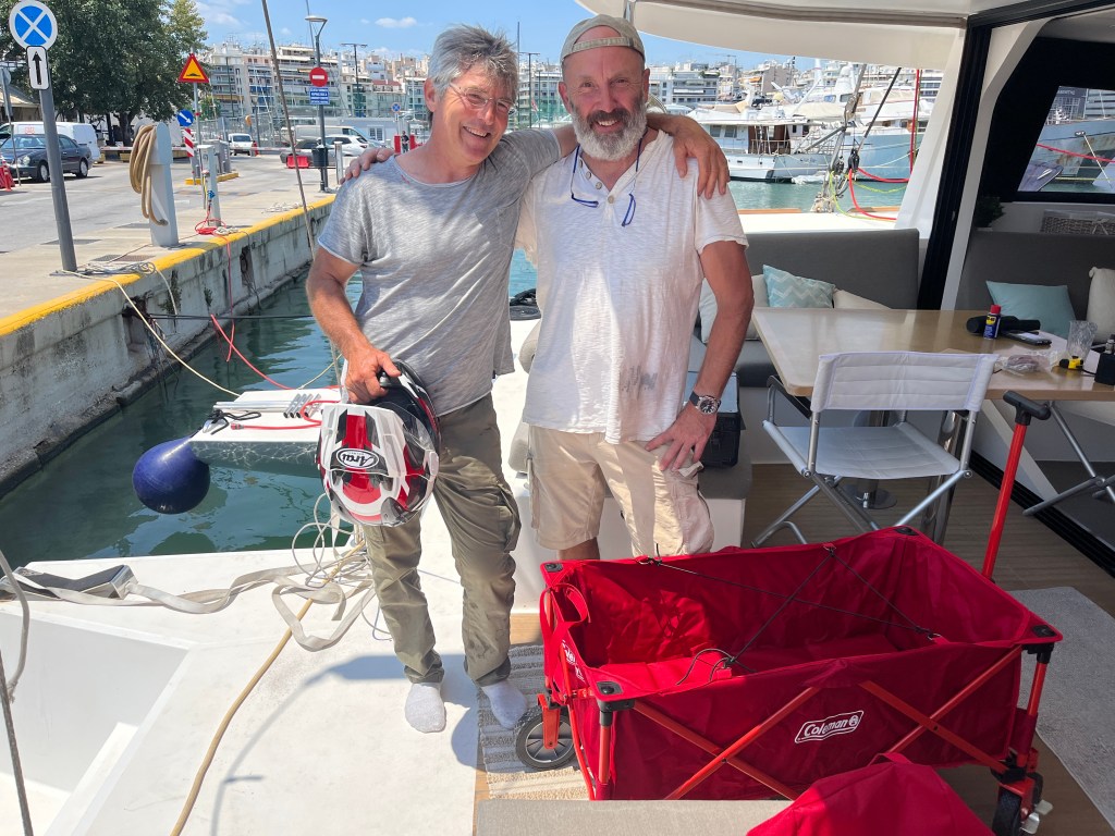 One of the wonderful delights of being in Athens is having the chance to see our old friends Georges and Christine. Christine is away but Georges came to see us on the boat, took us to a fabulous place for dinner and offered us any assistance we needed whilst in Athens. We took him up on that offer to help us source a new cart and lo and behold 2 hours later he arrived with one! On his motorbike!!!