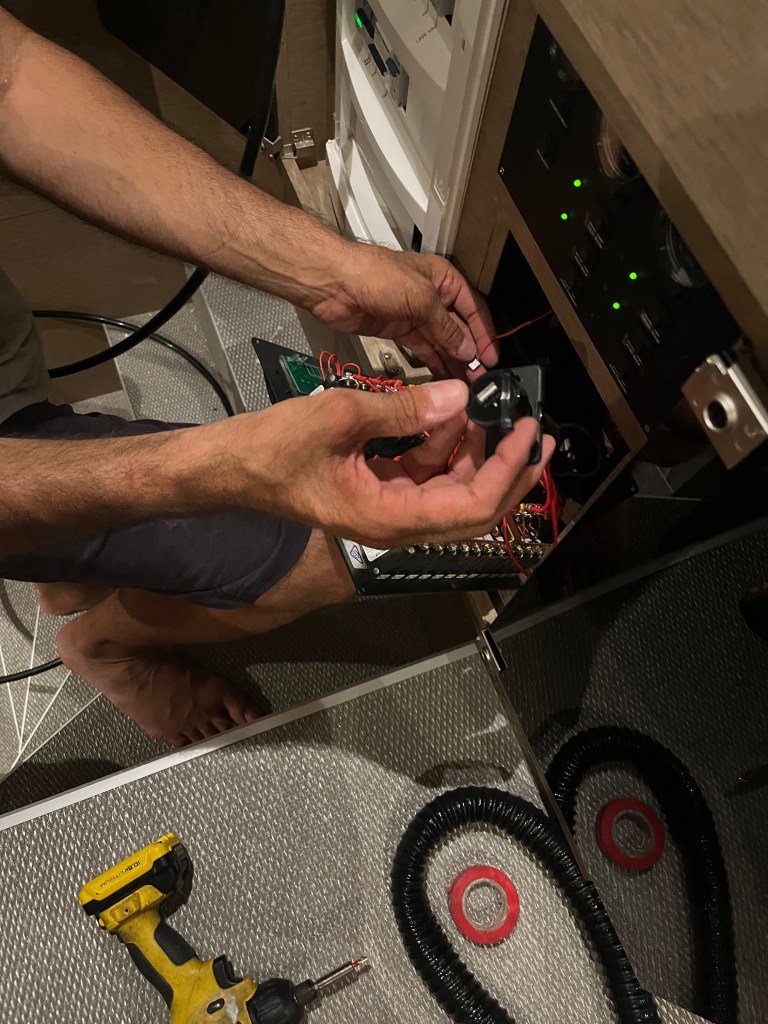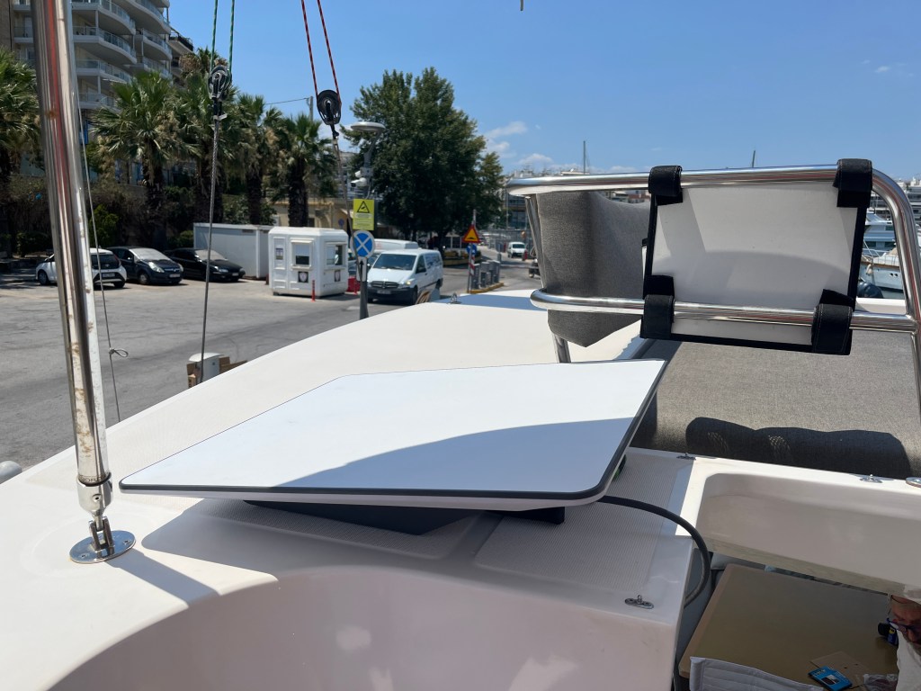 Next DIY challenge was installing the Satellite dish! Having successfully smuggled it in to Europe in one of our many suitcases now the task of where to situate it given the limited options on the boat. Up on deck next to the seating area seemed the best bet – not an area where anyone (should) be treading and with no obvious obstacles. Dishy is now in place but this may not be his permanent home as being so close to the seats does present an obstacle which means service gets interrupted, albeit just for a few seconds, every 7-10 minutes so not ideal.