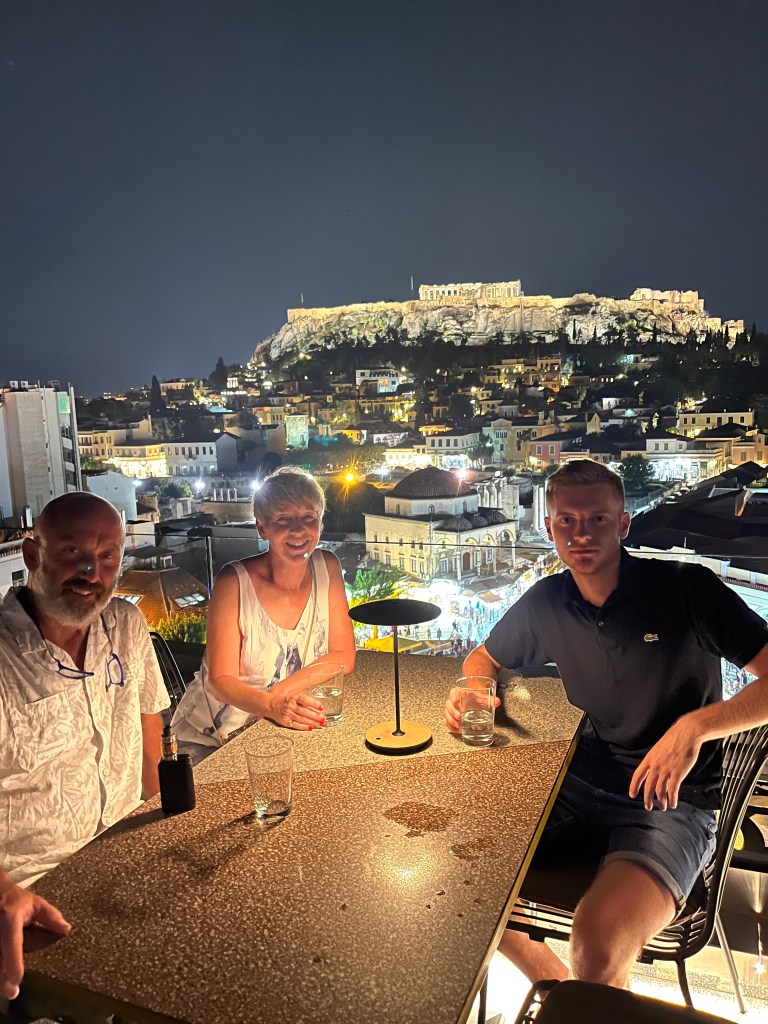 For Charlie’s last night with us we hit downtown Athens – such a stunning City. We took to the rooftop bar at the ‘A for Athens’ hotel which was on the 6th floor. Trying to be healthy and get some much needed exercise we decided to walk up the stairs rather than take the lift, pushing past the rather ineffective and very small barrier in front of the stairs. We must have been pretty quick as we completely missed the Receptionist running after us and calling out something or other!