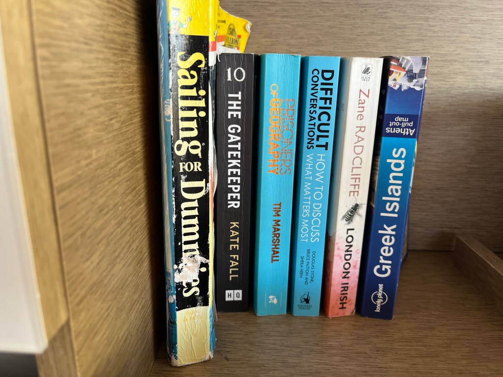With all these practical endeavours now completed I felt it was time for some cultural inspired changes in the boat. Although I have my iPad full of fab digital books I also brought with me some ‘real’ books as felt it would be good to have these in case of electrical issues or for visitors to dip into. This is the analogue library so far!