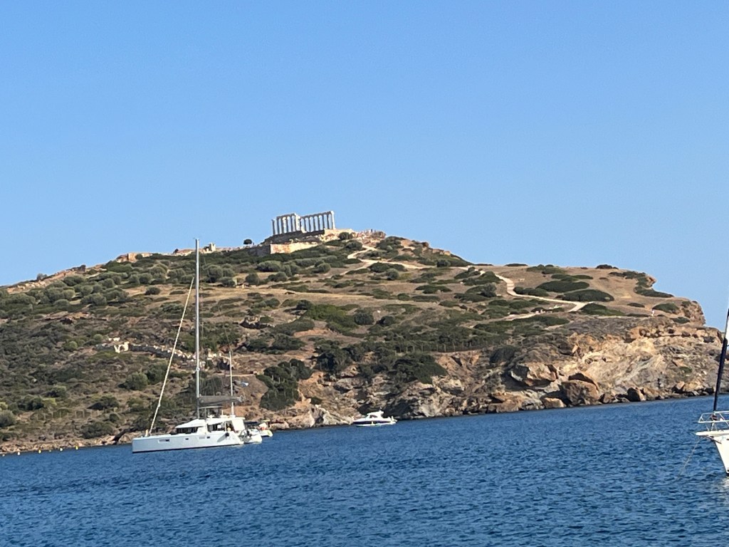 We are now some 30 miles south of Athens, at the Southern tip before we head east to the islands. The bay is in Cape Sounion which is famous for being the location of the Temple of Posedion built in 440 BC.