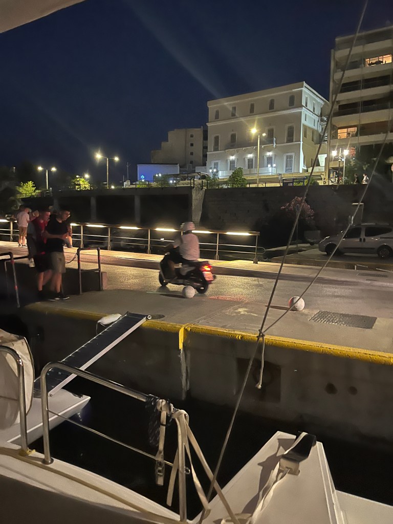 We headed back to the Marina, planning to have dinner there when we bumped into some ‘old’ friends! Rewinding slightly, when we were in Trapani, we were thrilled to see another Neel Trimaran. It is still not that common to see another Neel so we planned to go say ‘Hi’ to the crew of Anna II the next morning but they beat us to it! Wolfgang and Corinna came to visit us and explained that they were with their friends Walter and Anna (the boat owners) on their trip that started in Barcelona and would end somewhere in Greece!