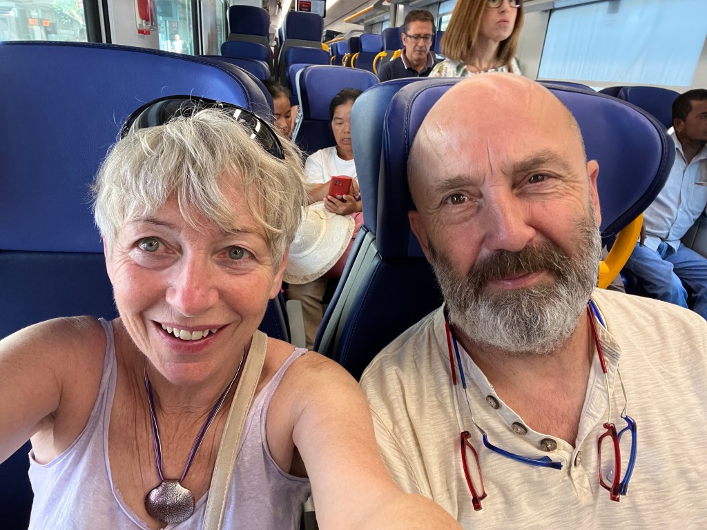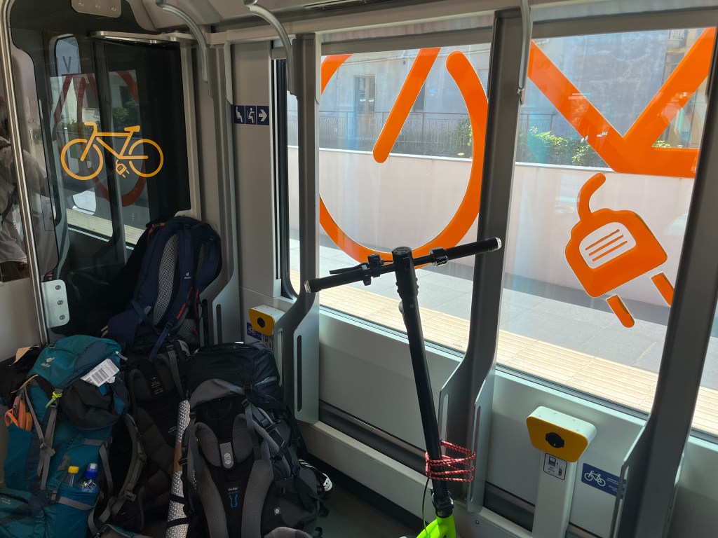 After an overnight stay in Palermo, in a fab B&B opposite the station (very important as we had 5 suitcases to manage!) we took the train early the next morning to Capo d’Orlando. Italian trains are incredible – air con, USB ports, comfy seats, special area for bikes and luggage, clear information on the screens in carriages and all for 10 Euros per person for a 2 hour trip!