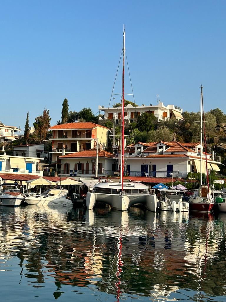 After a couple of nights on the island of Aegina we headed an hour away to the tiny harbour of Vathy – this was another case of ‘how the devil did Jacques manage to get us in there!’ Beautiful place, lovely people, full of fishing boats and local characters!
