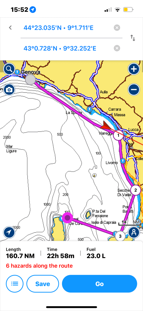 The grand plan is to sail around the World but for this first 12-18 months we will be in the Med and for this first phase of 6 weeks we are making the trip from Genoa to Sicily via Corsica, Sardinia and Tunisia (spot the odd one out there!)