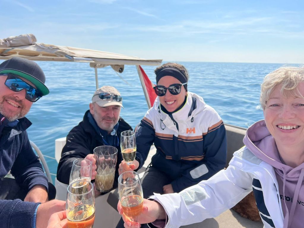 On Friday morning we set sail (actually motor) from Genoa Marina with Marc and Claudia, the then owners, their beautiful dog Gallileo and Catherine the Yacht Broker, and out at sea we signed the papers and celebrated with Champagne (and Ricard of course!)