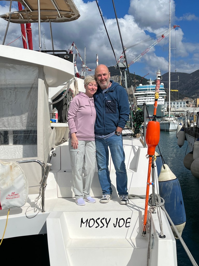 When we got back to Genoa Marina, Jacques made haste in the re-branding of Atika III to new and shiny Mossy Joe. When the new name was ‘unveiled’ it was to say the least a very emotional moment, the boat’s new name the nicknames, and in honour of, both of our Dads. Mossy and Joe would both have been dumbfounded to have a yacht named after them and although neither of them were ‘boat’ people they both had passion for the sea.