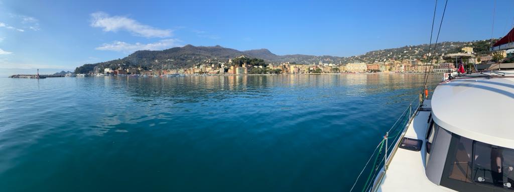 In the dark we manoeuvred the dinghy back on board, winched up the anchor and set off but we had no idea where to! The next bay along did not allow anchoring so it was another 30 minutes before we found a place in Rapallo Bay, set the anchor and said Goodnight after a very busy and adventurous day!